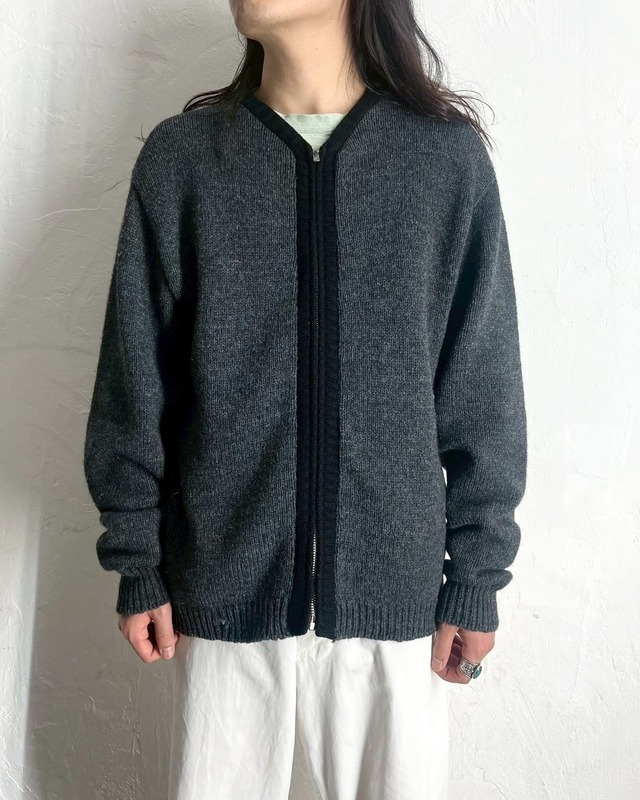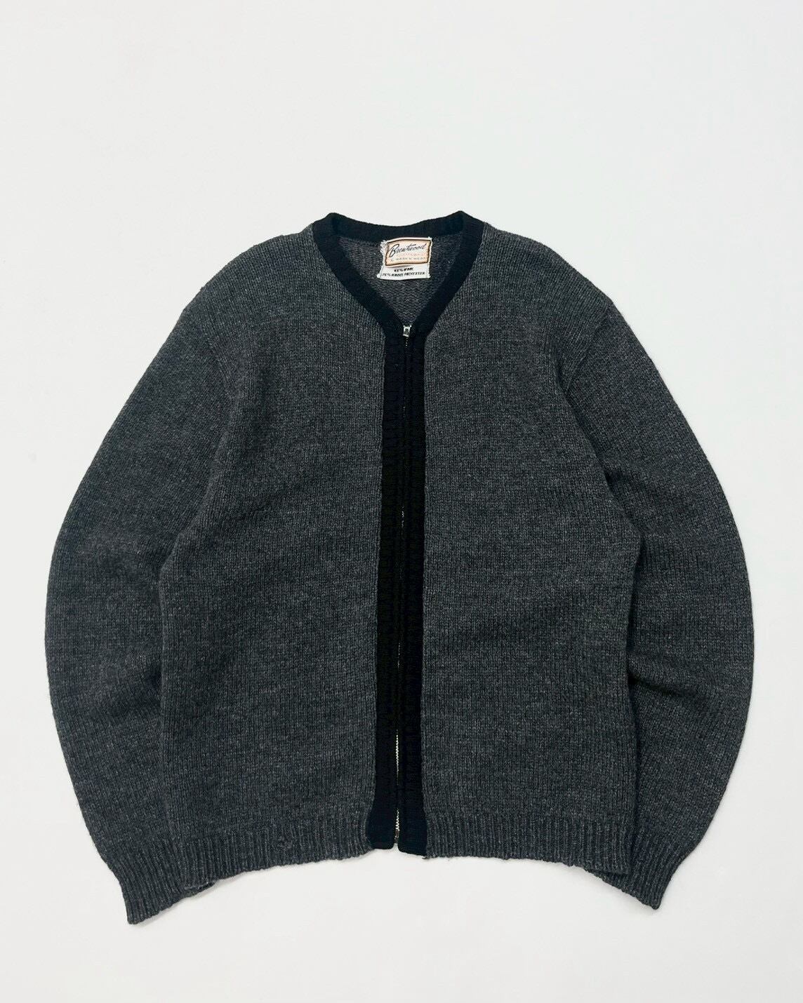 60s BRENTWOOD "Gray×Black" Zip-up Knit Cardigan