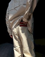 ・右足の裾にブランドタグ