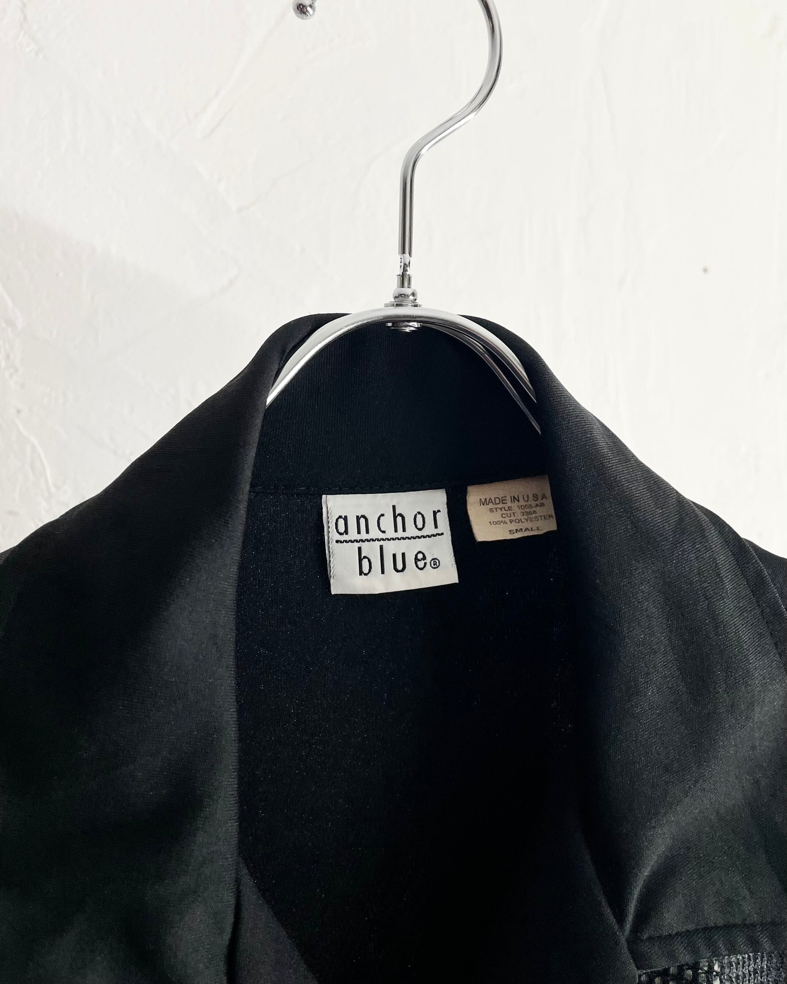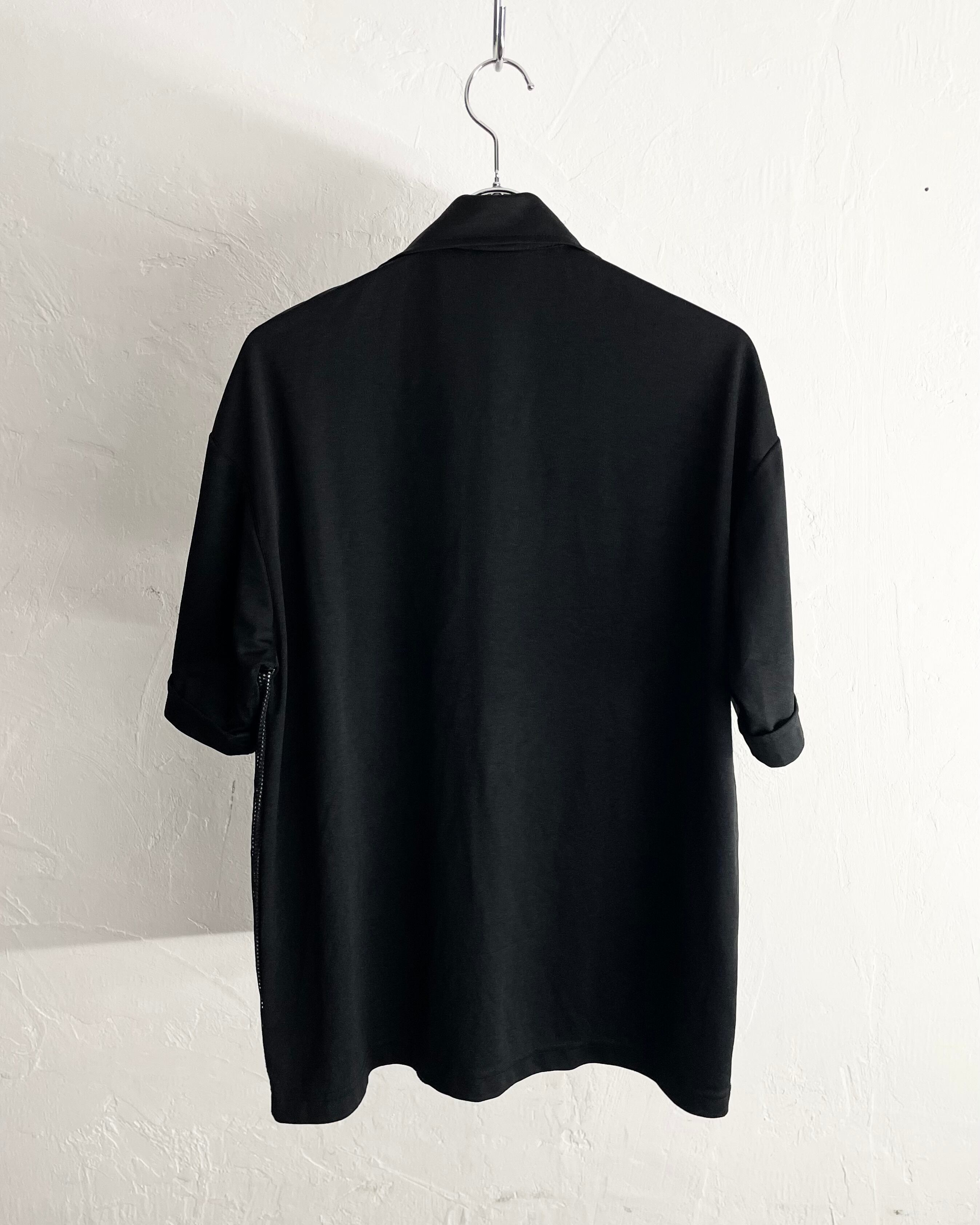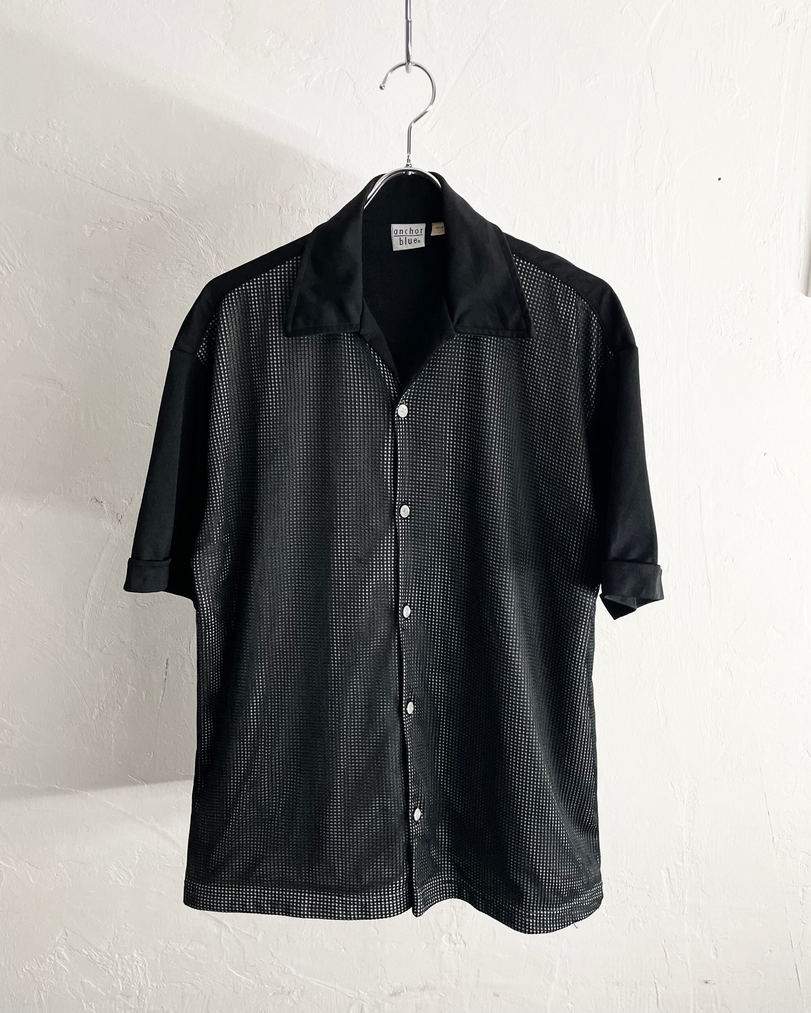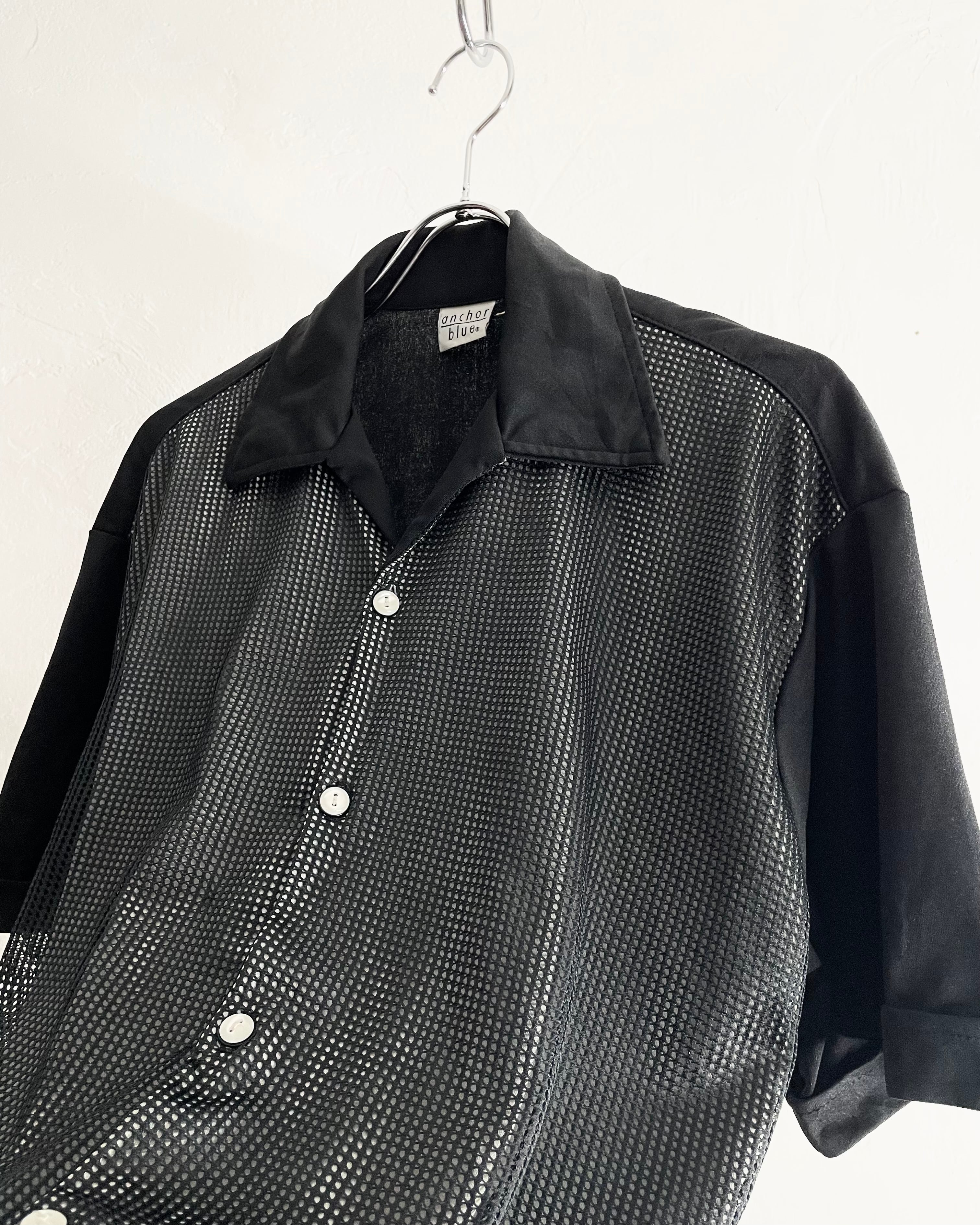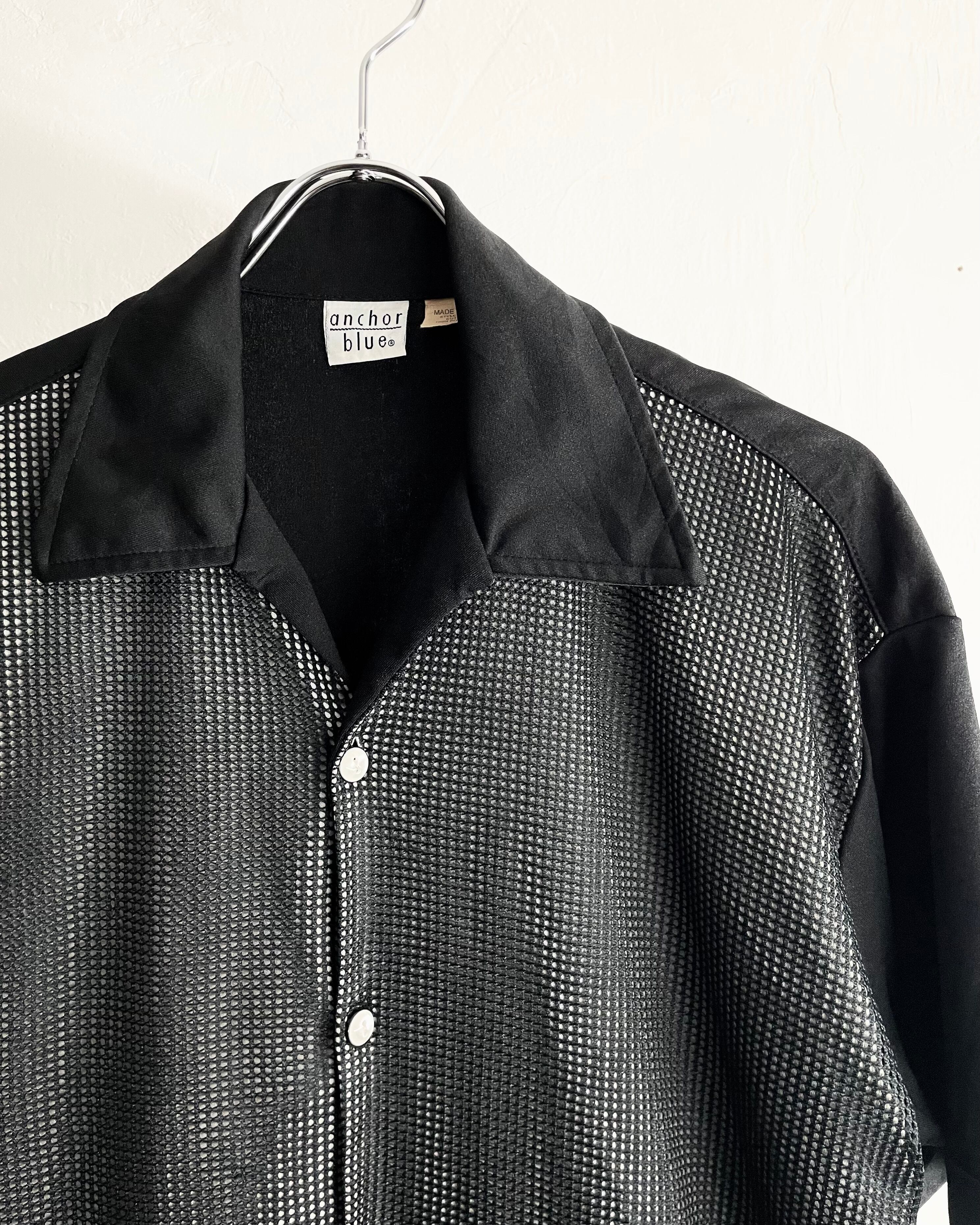 80s anchor blue Front mesh Design Open Collar Shirt USA製