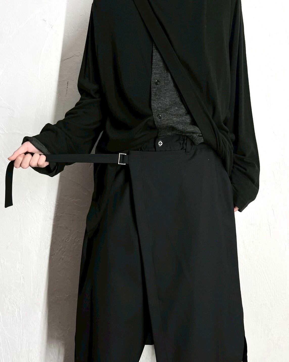 ・ウエスト部分のベルトで生地のドレープ感を調節