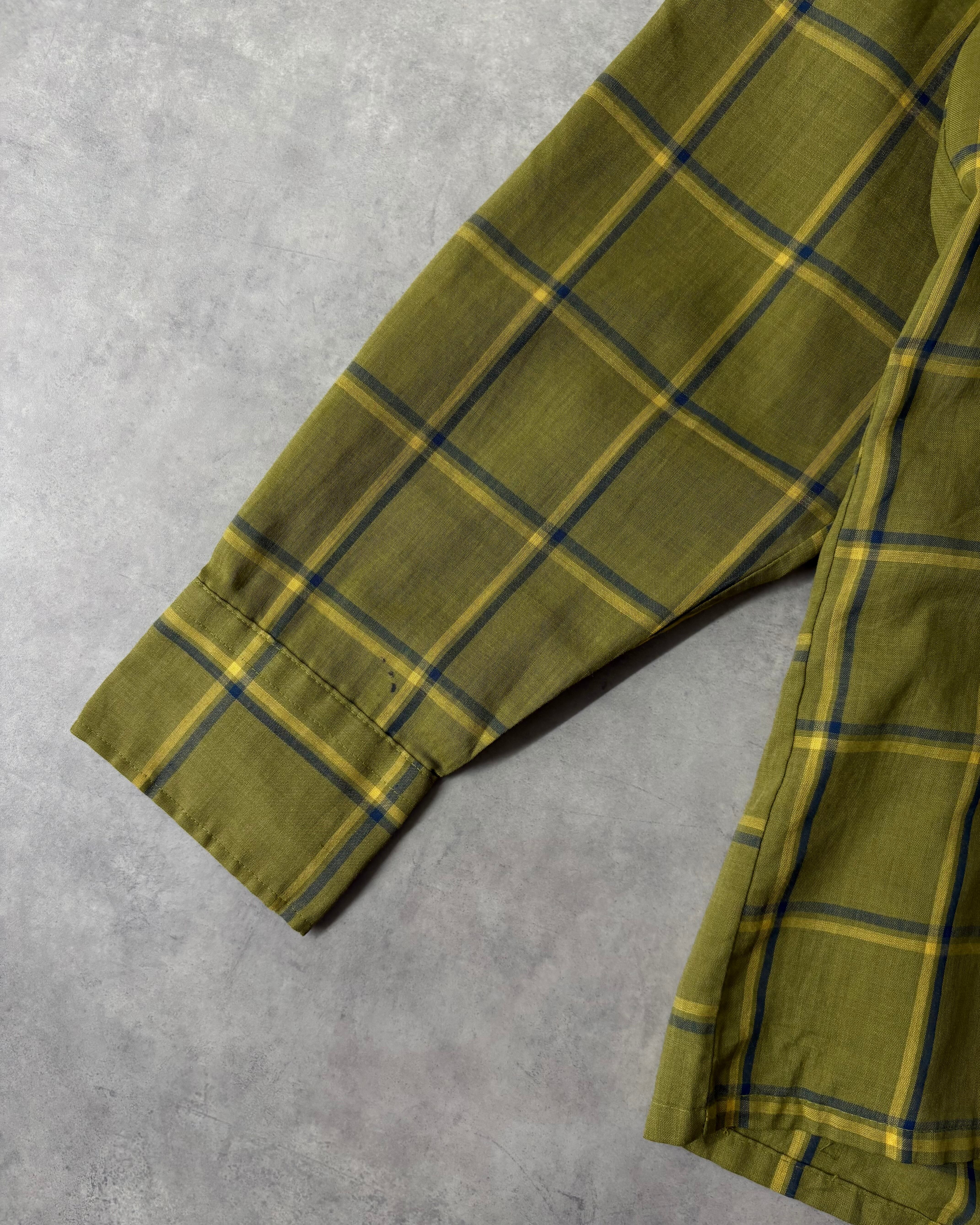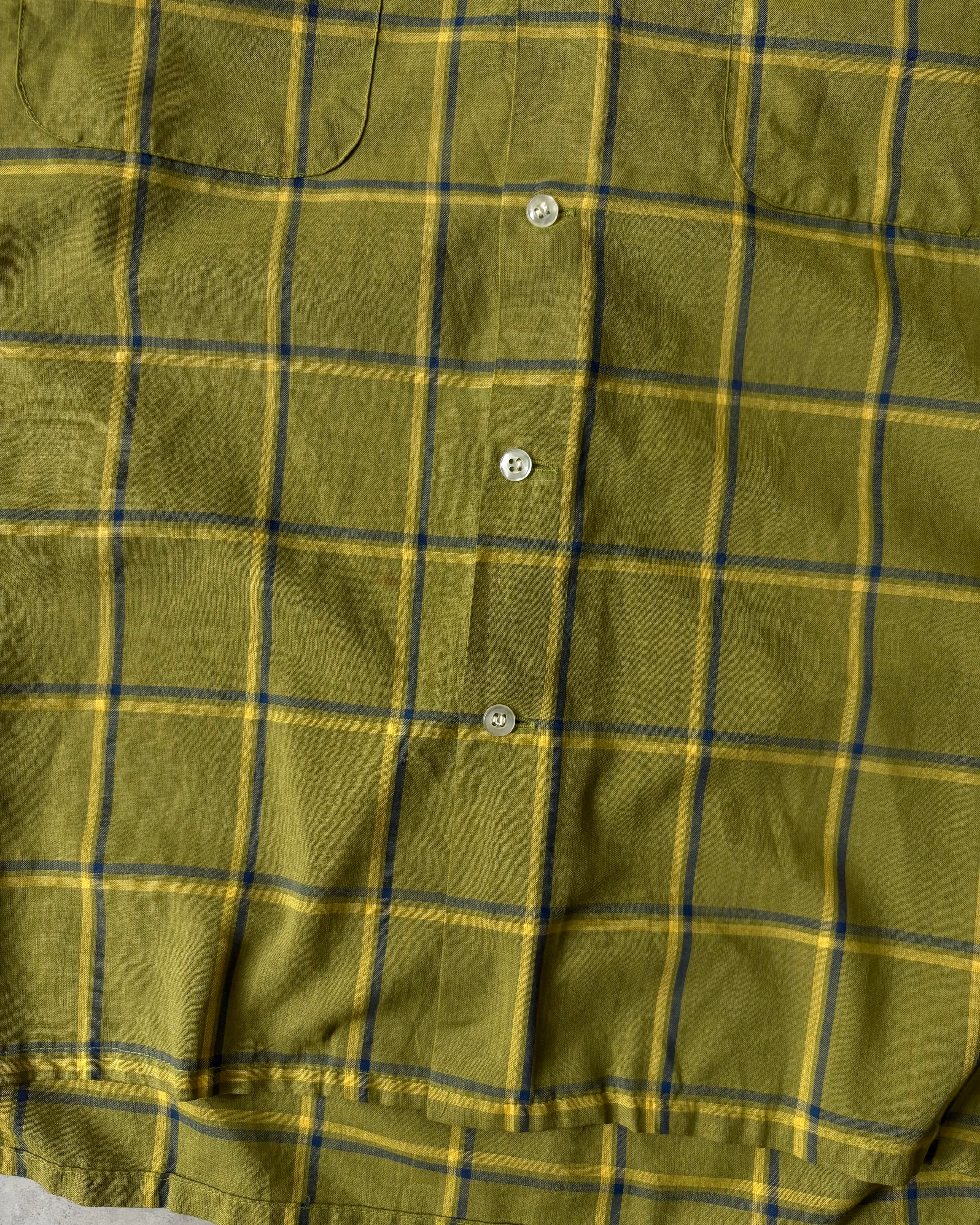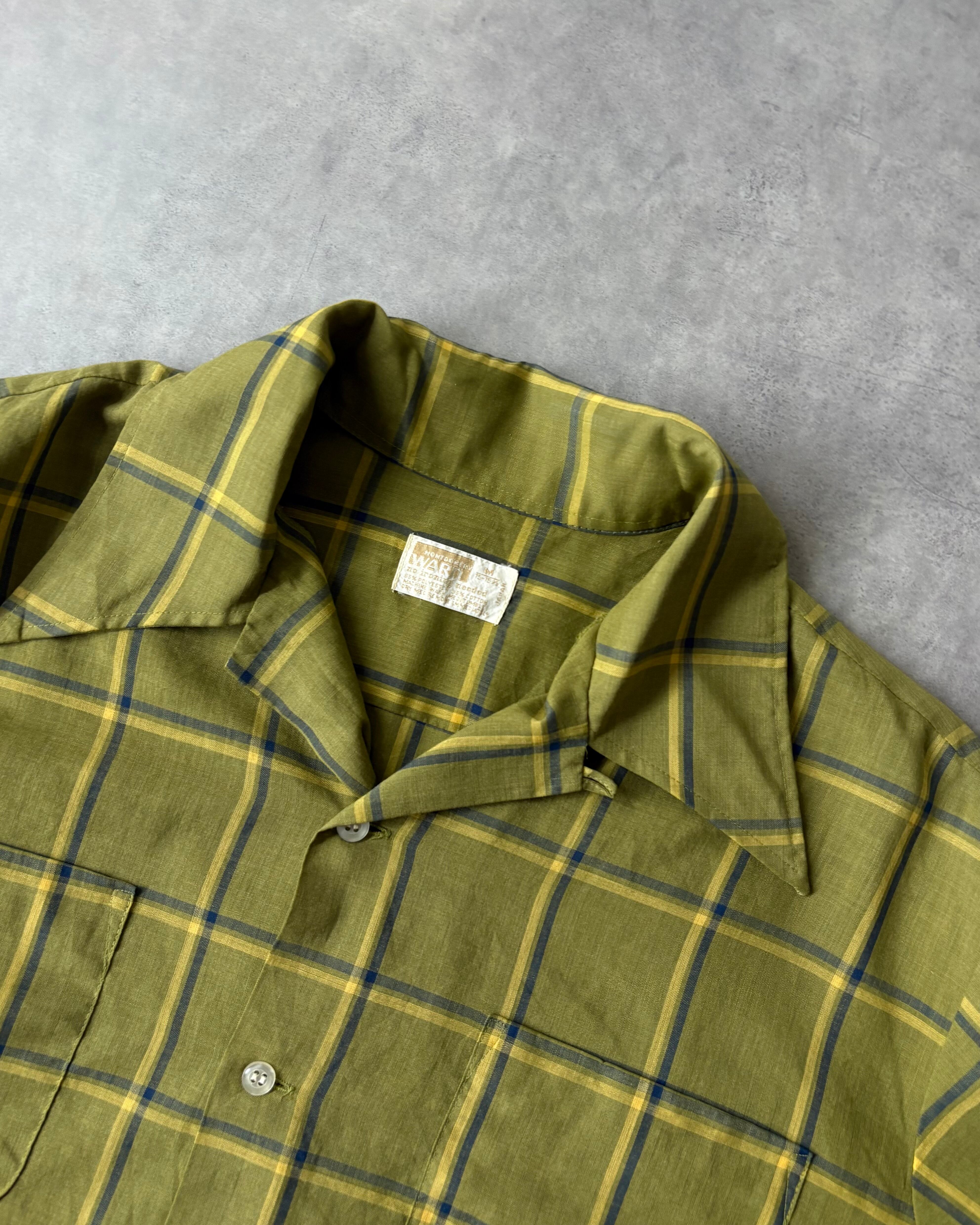 70s MONTGOMERY WARD Cotton×Poly Open Collar Plaid Shirt