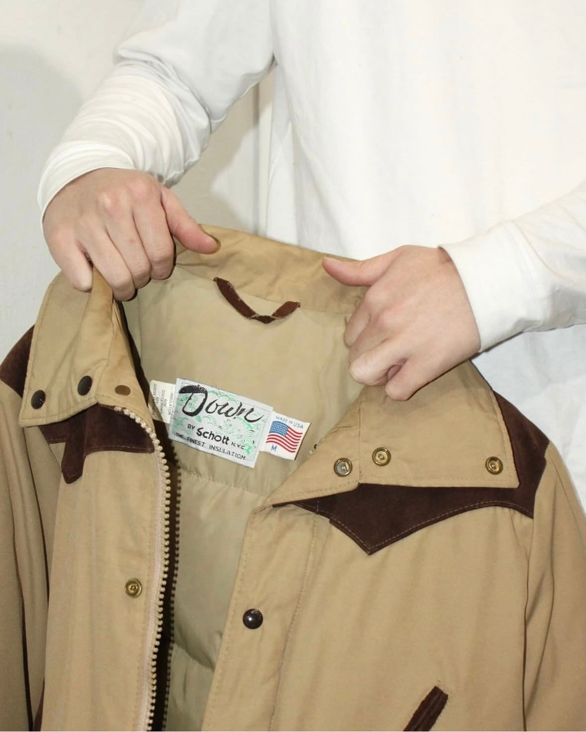 80s Schott Suede Switching Goose Down Jacket USA製