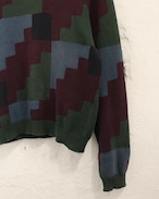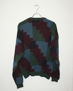 90s PERRY ELLIS Block Pattern Cotton Crew Knit