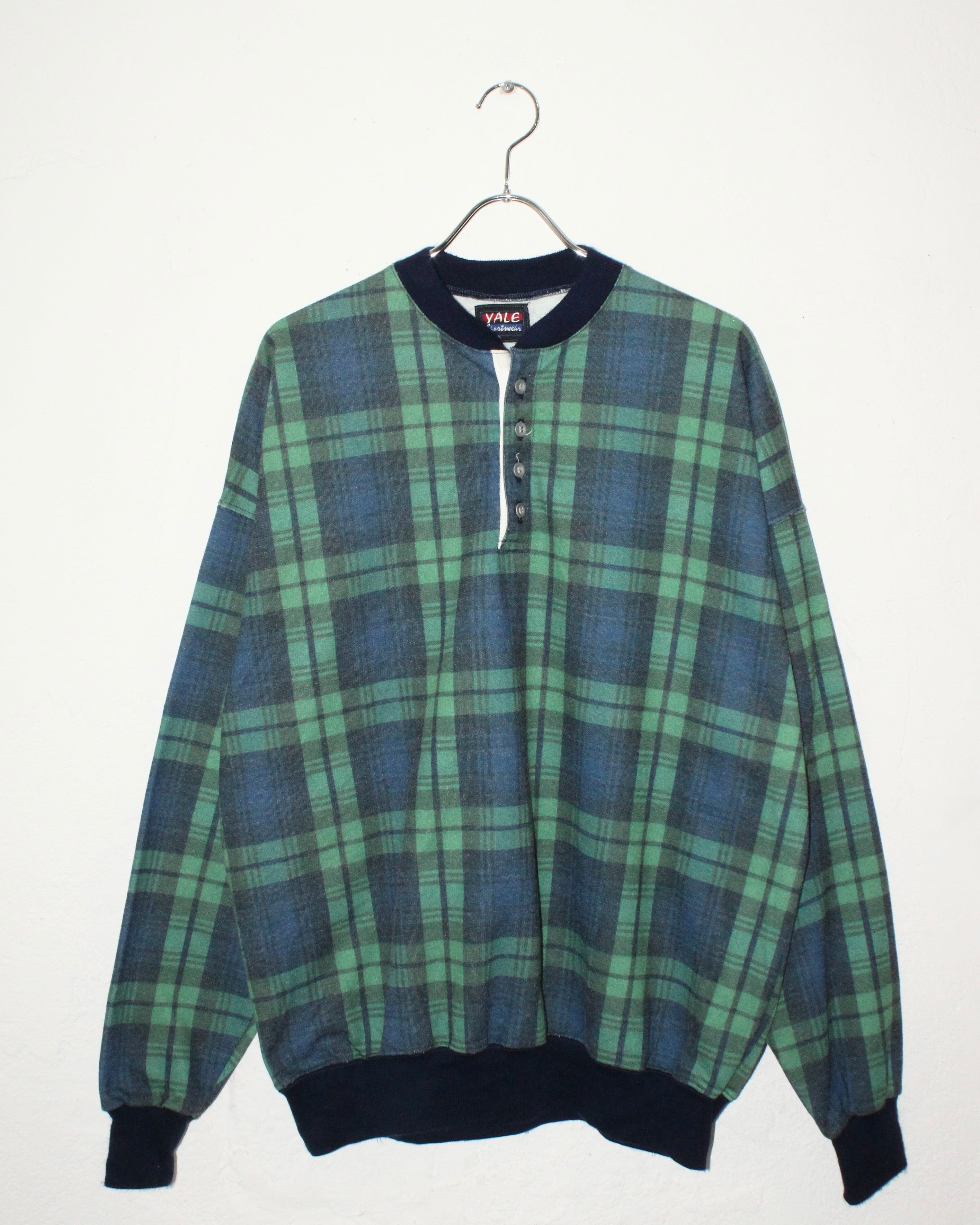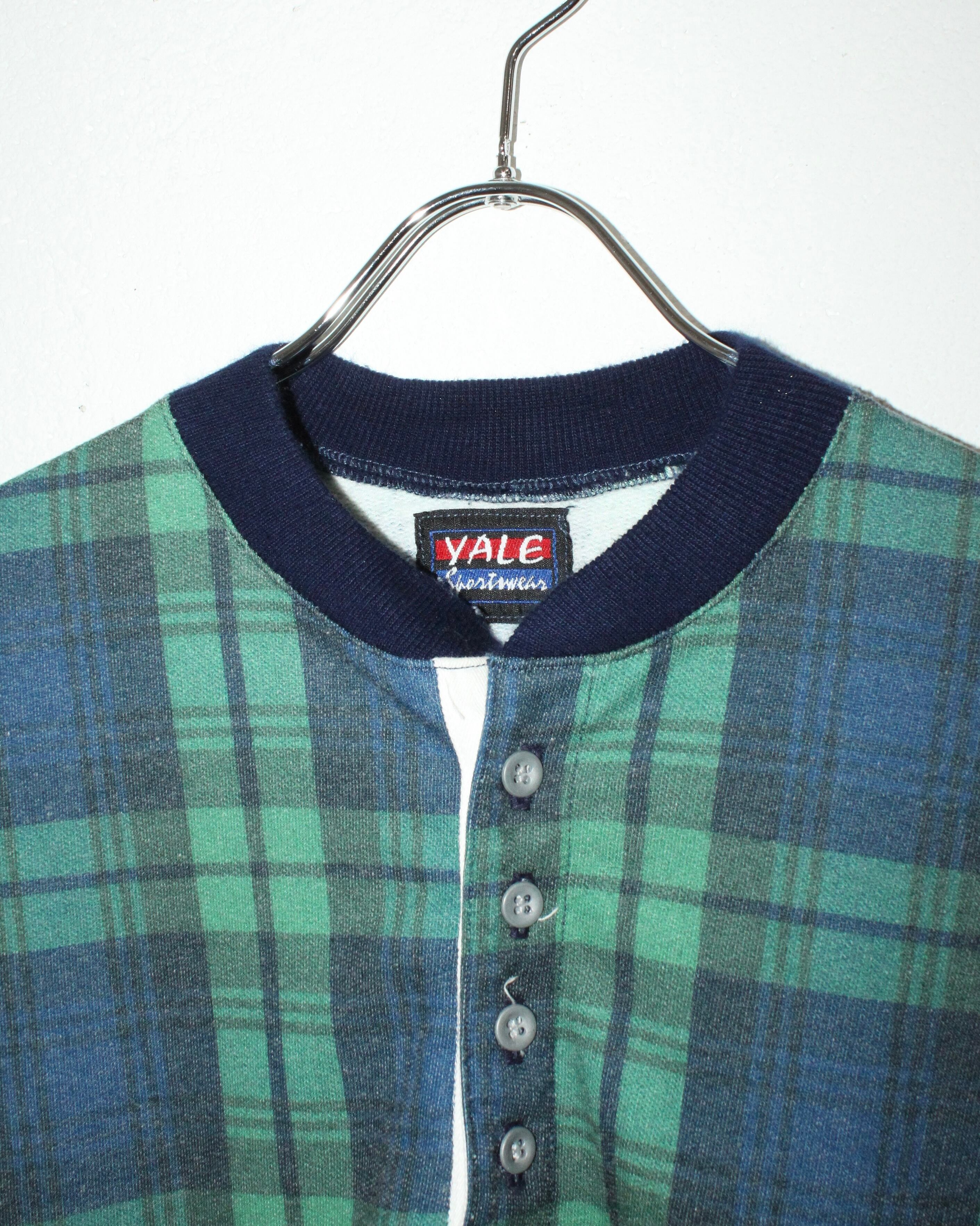 80s~ YALE Sportswear Blackwatch Pattern Henry-Neck Sweat USA製