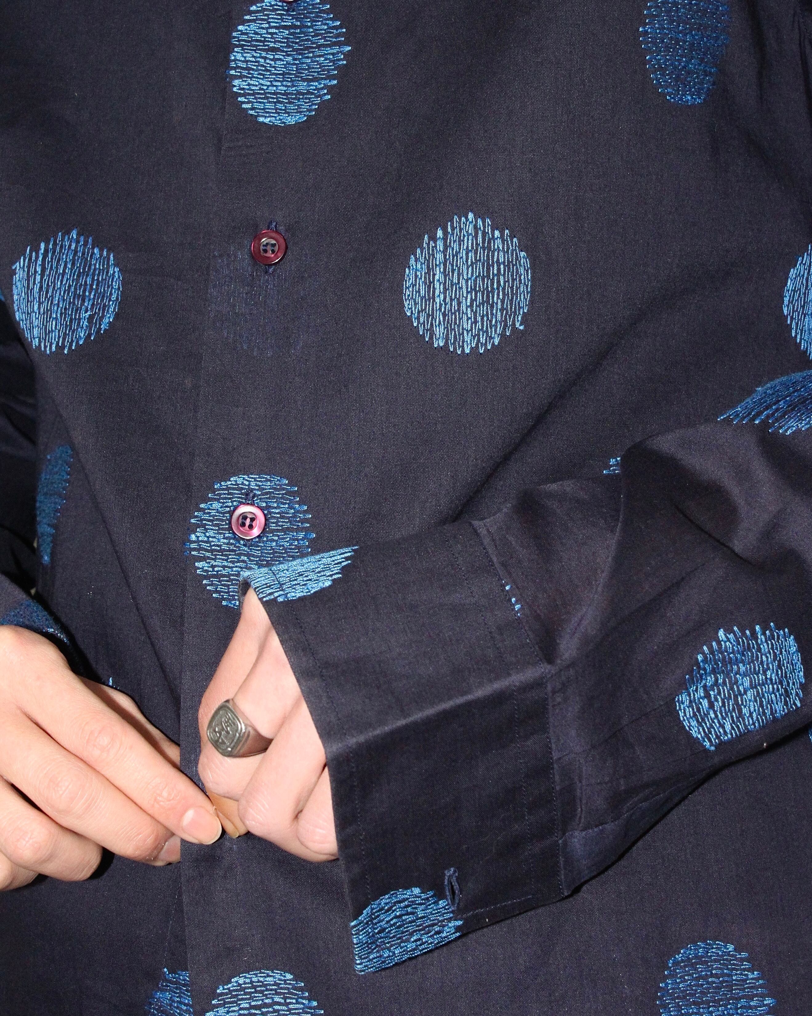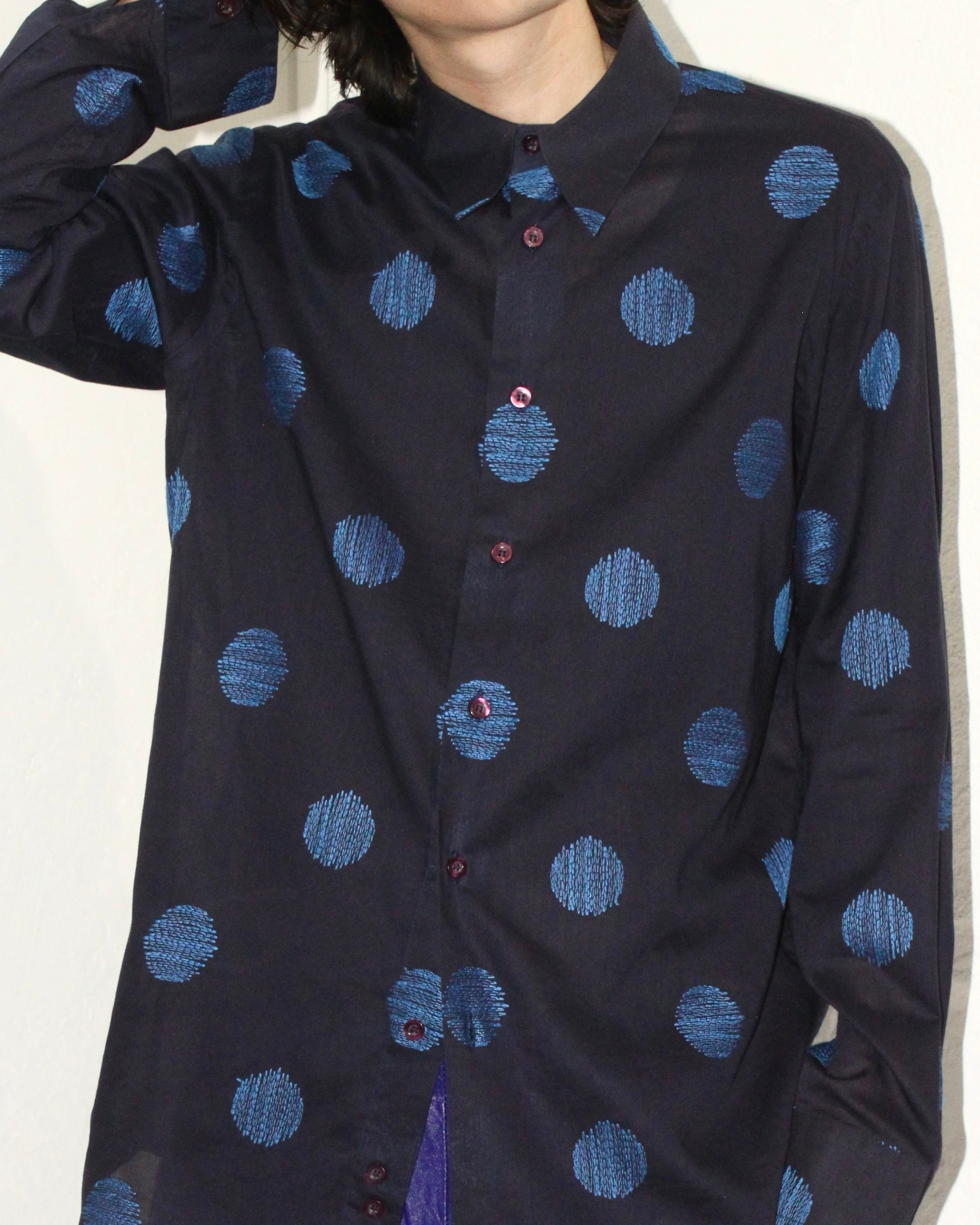 ・90年代頃の刺繍ドットパターンの長袖シャツ