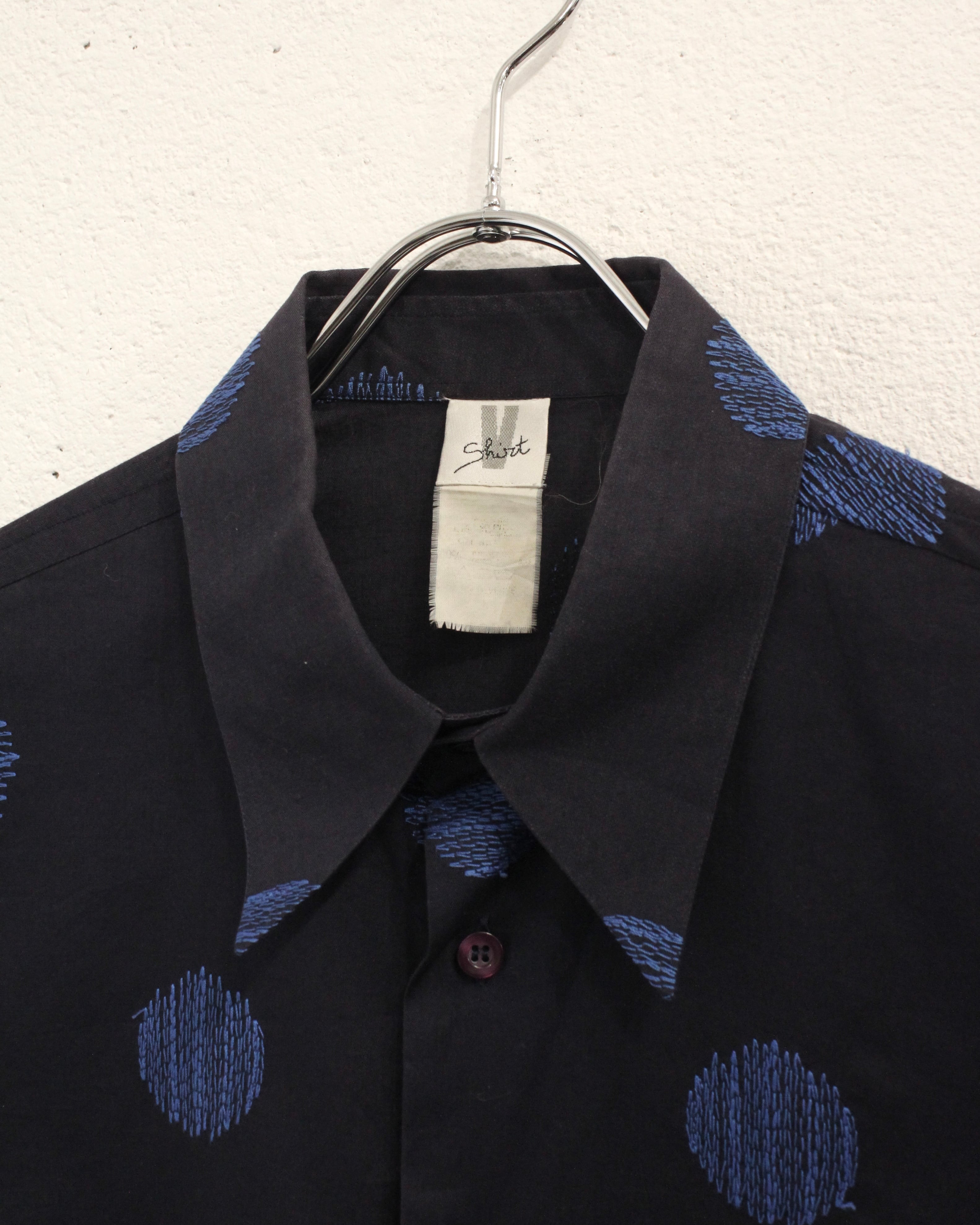 90s V Shirt L/S Embroidery Dot Pattern Shirt