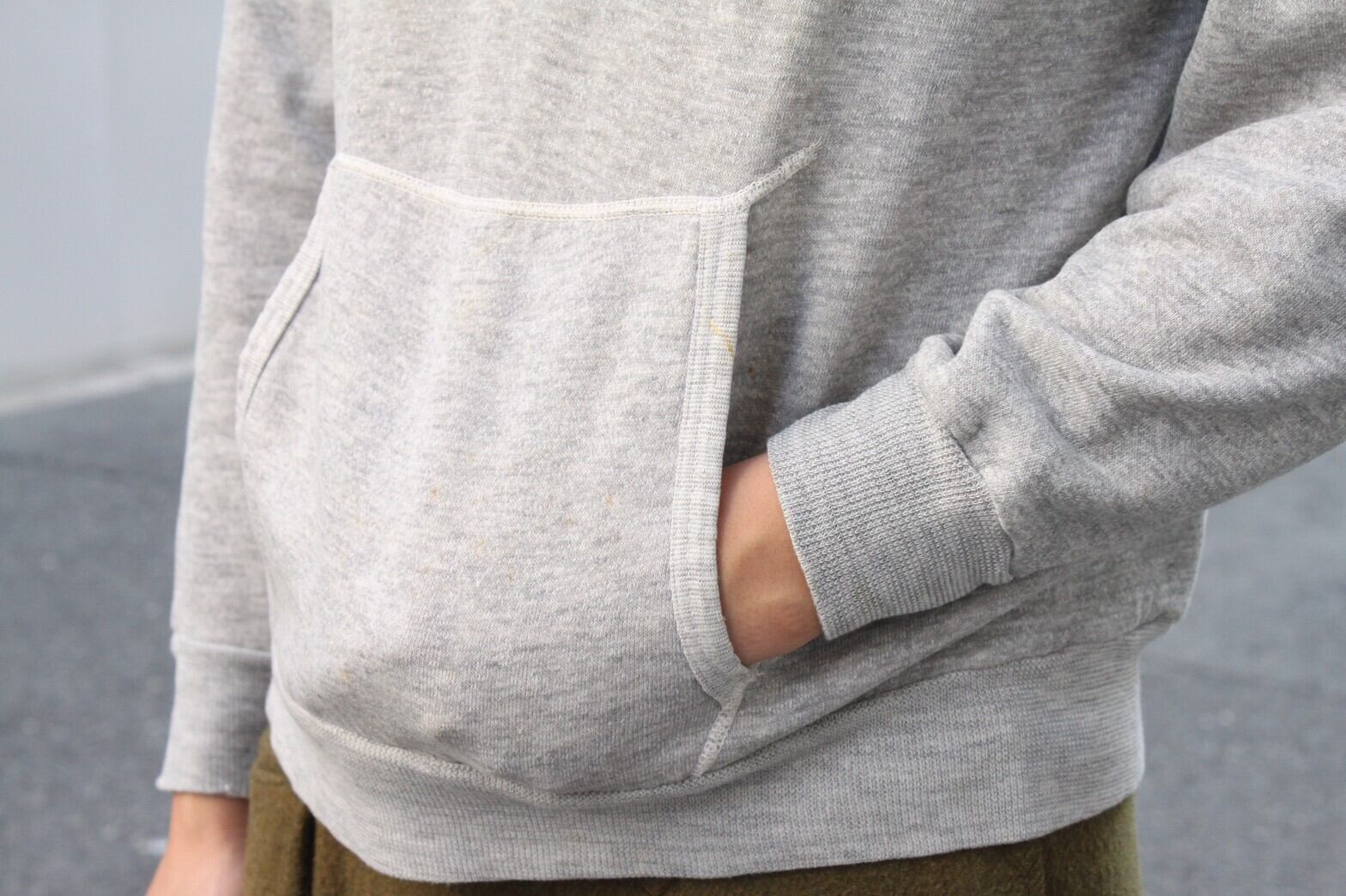 ・首元に切り込みが入っており首回りにゆとりのある着用しやすいフーディー