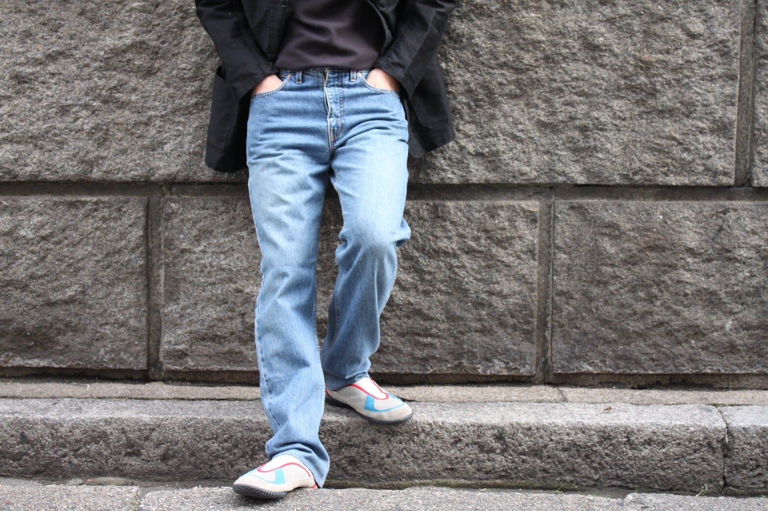 近年特に注目を集めるユーロリーバイス。 80年代から2000年代前半にかけてリーバイスのヨーロッパ規格として生産されてきました。 66前期以前の所謂ヴィンテージのリーバイスはデニムの染色に天然インディゴが使われてきました。 当時、天然インディゴを使うことで履きこみ、洗濯をすることで起こる経年変化は大衆には受けず思考錯誤の末 70年代後半(78年頃を境に)硫化染料を取り入れメリハリの少ない、均一な色落ちをする生地へと品質を変化改良されて行きました。 製品としてのクオリティーは上がったものの現代の価値観であるデニムらしい経年変化が楽しみづらくなりました。 また、仕様変更に伴い当時78年まで既存で使われていた余った染料はアメリカでは使えなくなりました。 そんな折、アメリカでは使えなくなった染料も当時ヨーロッパでは継続して使用出来ることからユーロリーバイスの立ち上げへと繋がっていきました。 つまり、ユーロリーバイスは80年代以降に作られたものの66前期以前の染料が同一またはそれに近い染め方をしているので デニムフリークたちが憧れたヴィンテージデニム特有のアタリを最近のデニムで楽しめるというのが大きな特徴となっております。 ユーロリーバイスは以前から人気と希少性から価格も高騰してきたUSA製のリーバイス(特に66前期以前のヴィンテージデニム)に比べ認知度は低く 通好みなアイテムとしてマニア向けなアイテムでした。 しかし近年のデニムブームと合わさりヴィンテージ・デニムが持つ風合いや色落ちの雰囲気を楽しみつつもUSA製に比べると低価格で選べる事から デニムフリークス達から普段使い出来、かつ経年変化も楽しめるデニムとして特に注目を集めています。